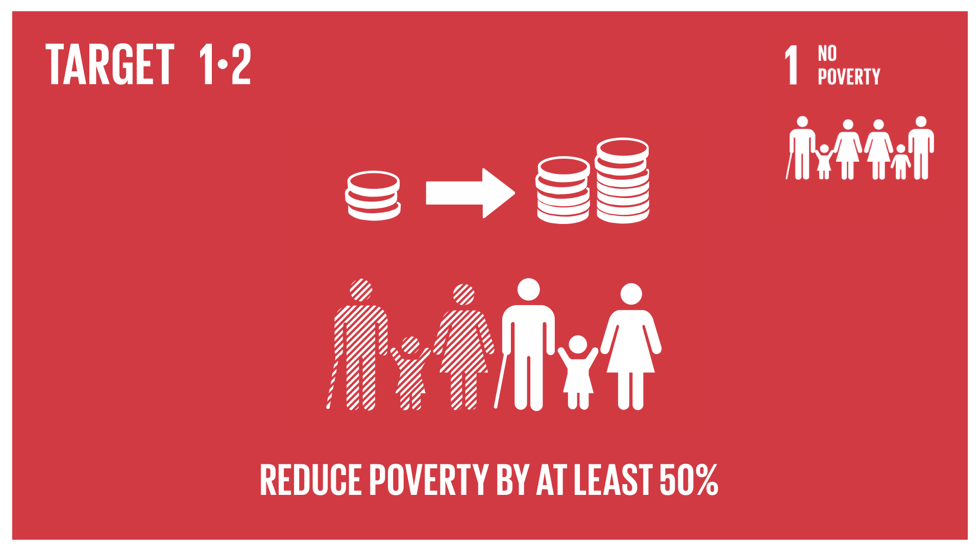 1.2 Tegen 2030 het aandeel mannen, vrouwen en kinderen van alle leeftijden die volgens de nationale definities in armoede leven in al haar dimensies, minstens tot de helft terugbrengen.