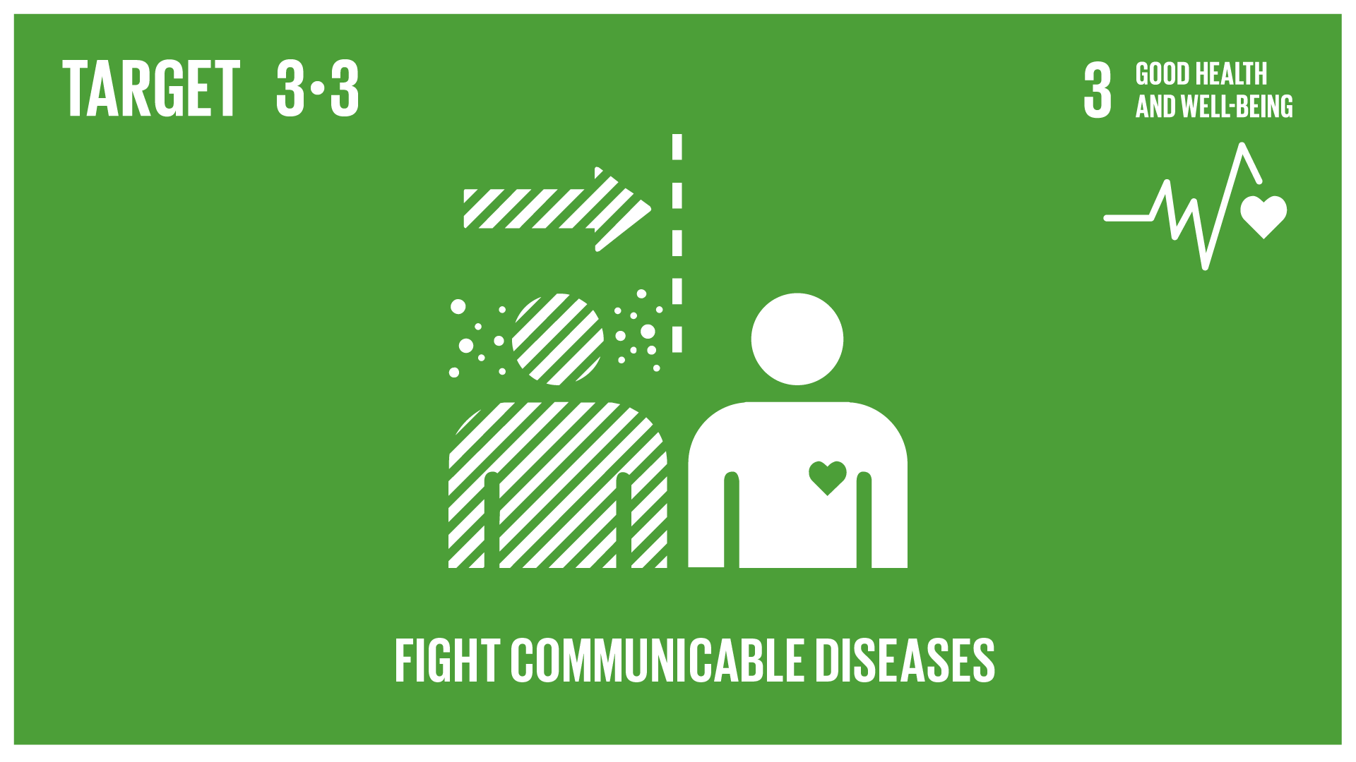 3.3 Tegen 2030 een einde maken aan epidemieën zoals aids, tuberculose, malaria en verwaarloosde tropische ziekten, alsook hepatitis, door water overgebrachte ziekten en andere overdraagbare ziekten bestrijden.