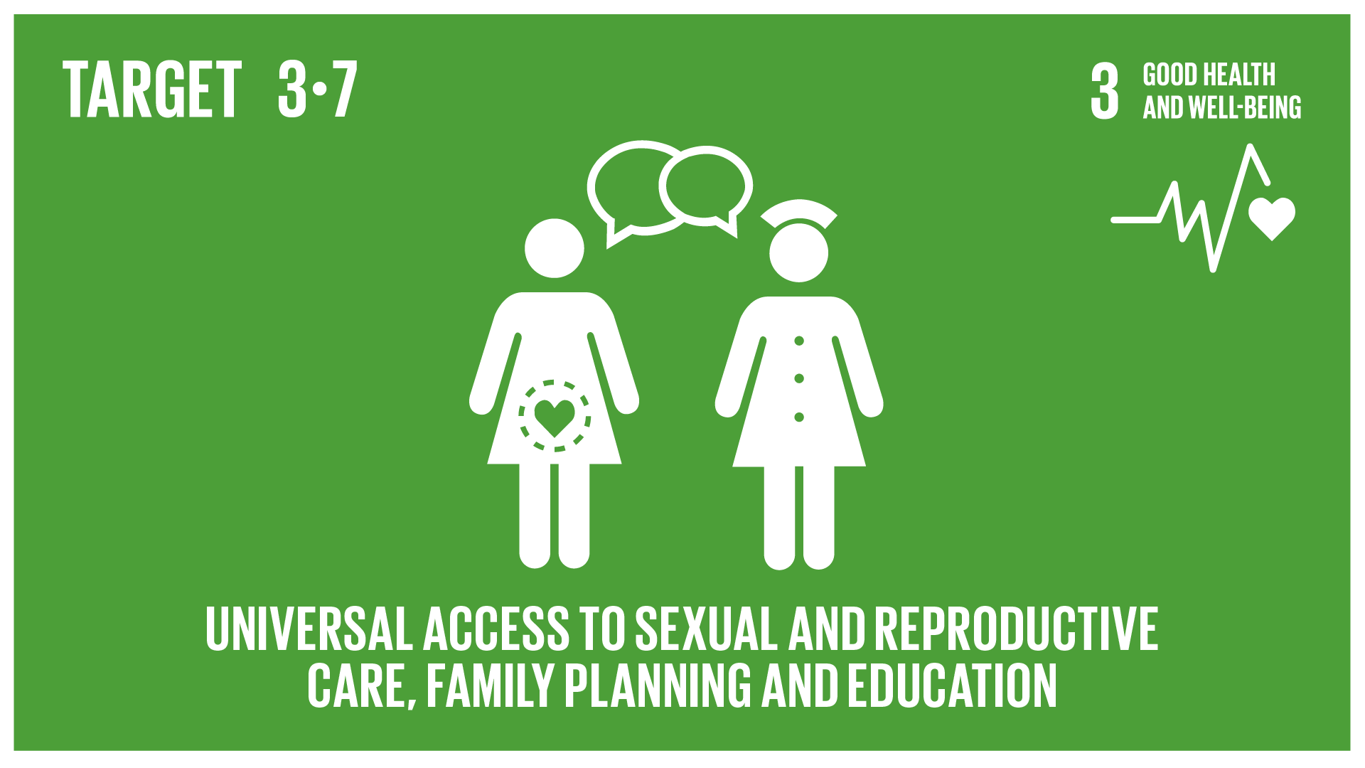 3.7 Tegen 2030 universele toegang tot seksuele en reproductieve gezondheidszorgdiensten garanderen, met inbegrip van diensten voor gezinsplanning, informatie en opvoeding, en voor de integratie van reproductieve gezondheid in nationale strategieën en programma’s