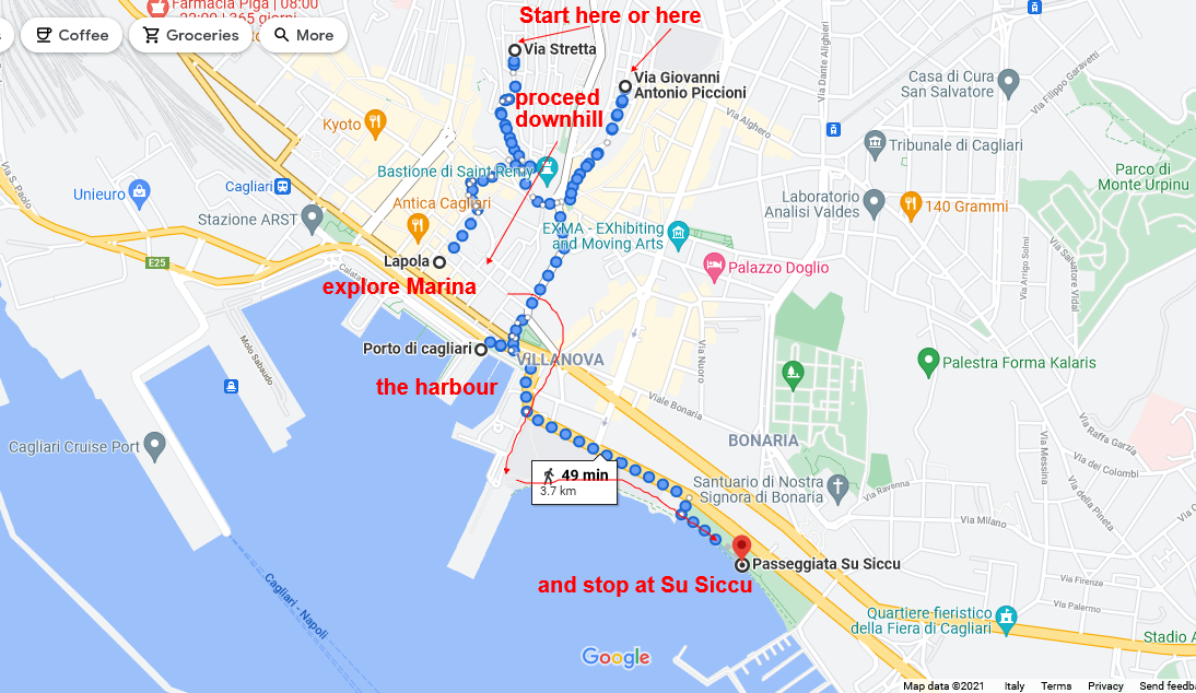 For this activity, you can start from the harbour and go exploring through Marina and the Passeggiata di Su Siccu from there.