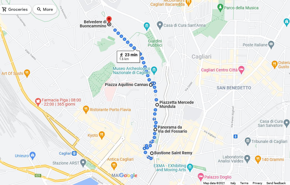 For this activity, you can start from Bastione di Saint Remy and explore the historical area of Castello going up from there, especially if you're tackling this activity right after activity 3 in the playlist.