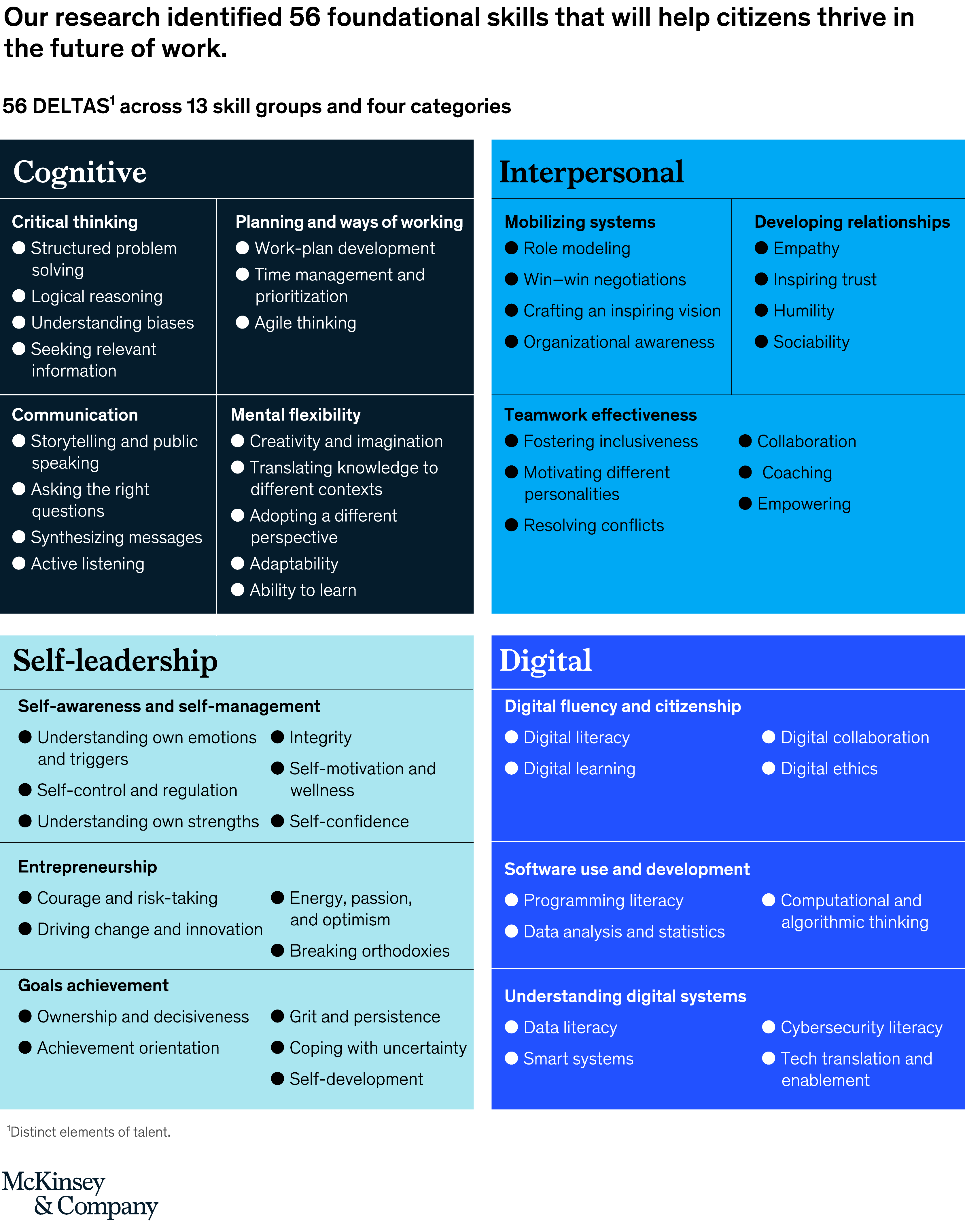 Institute for the Future predicts that people will be required to have a sound set of skills for future learning, work and civic engagement (see Global Youth Skills). These are the skills areas one has to develop: