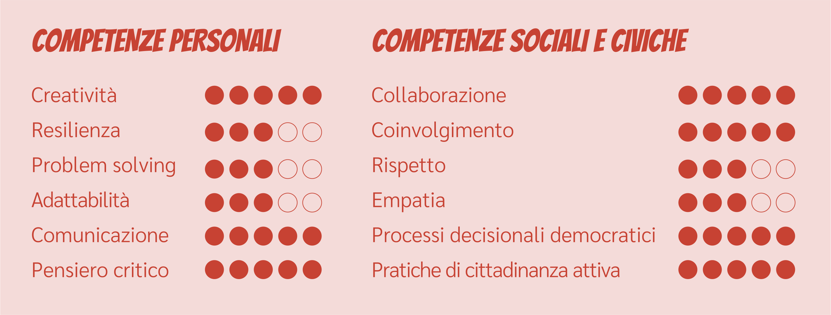 Ecco alcune competenze personali, sociali e civiche che i giovani possono sviluppare nei progetti di game design che seguono il modello Trasformativo: