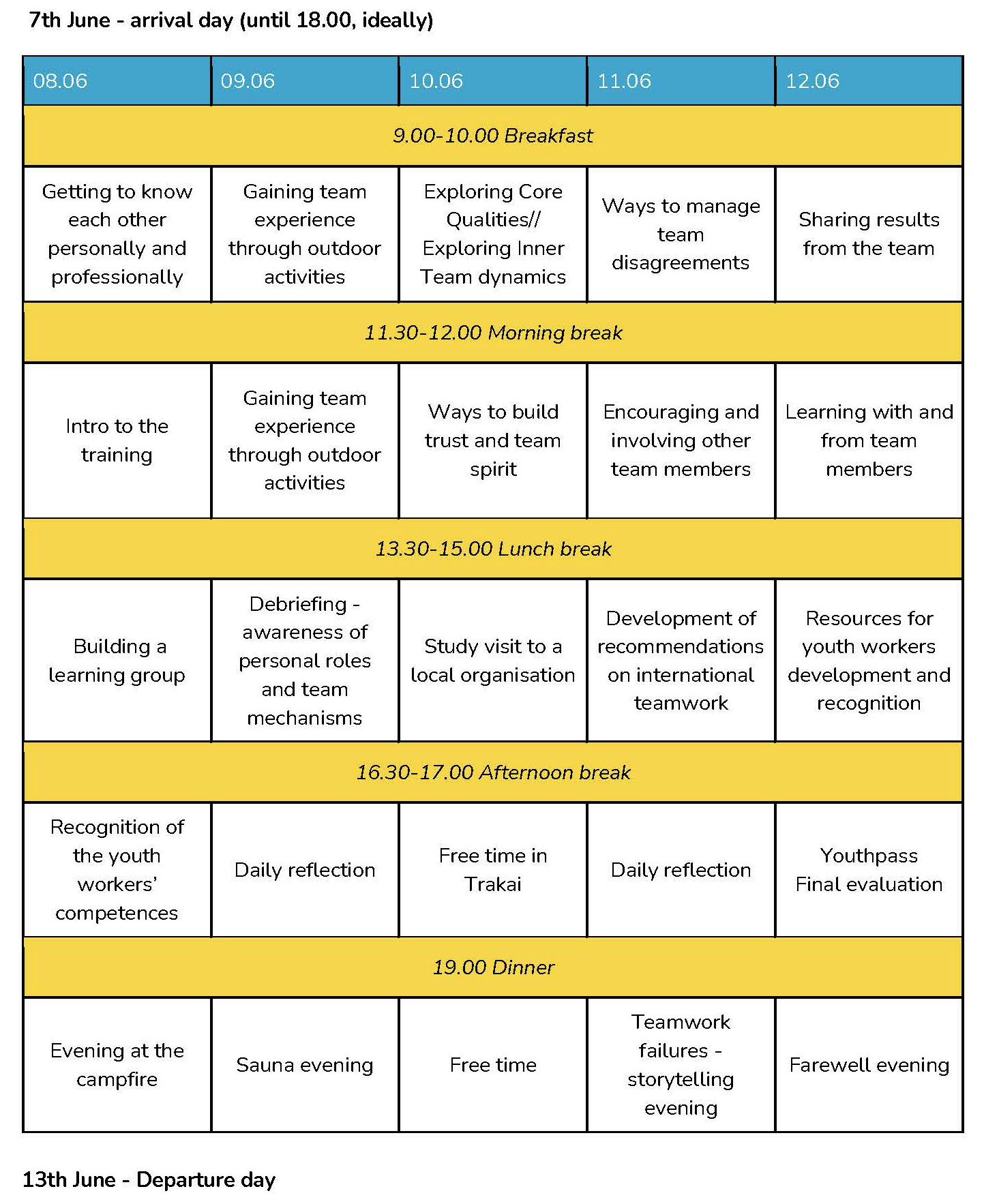 - Long-term development opportunity - participants willing to continue to develop their professional youth work competences will be invited to apply for the upcoming training courses on other competence areas.